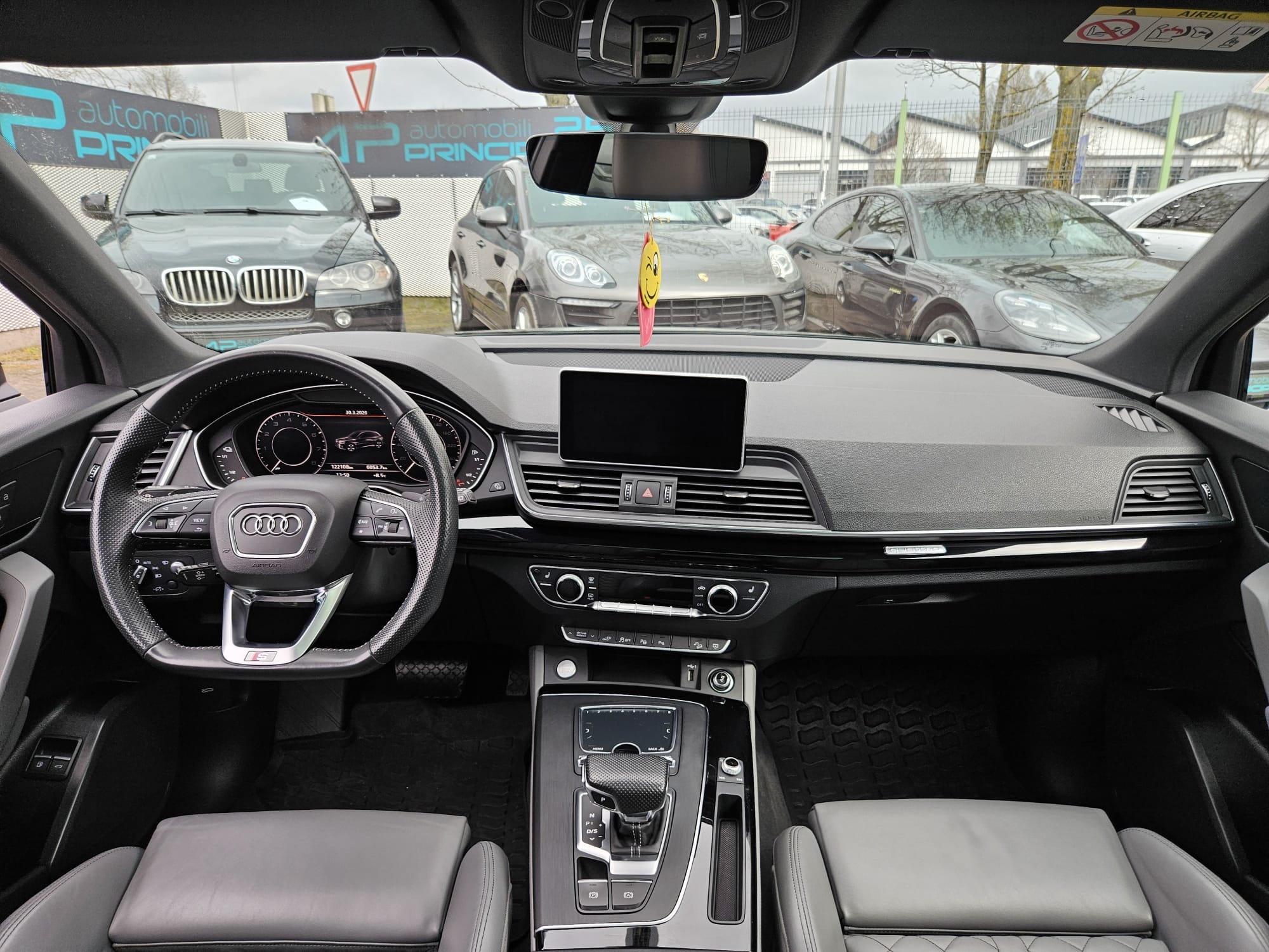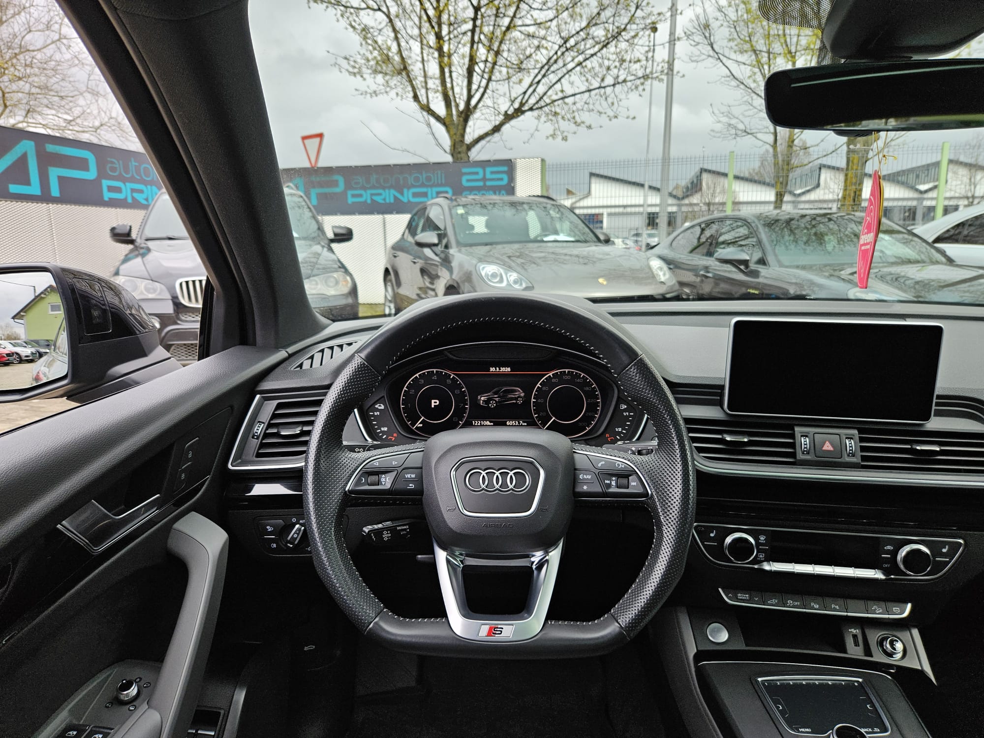 -S Line exterieur paket: bočni usisnici zraka sprijeda u titan mat crnoj boji s poprečnim letvicama u boji mat aluminija, difuzor straga u boji vozila s poprečnim letvicama u boji mat aluminija, dodatno lakiranje donjeg dijela karoserije, pragovi vrata u boji vozila, prednji i stražnji branik u sportskom dizajnu, S line logo na prednjim blatobranima, Singlframe maska u sivoj boji, osvijetljene alu letvice