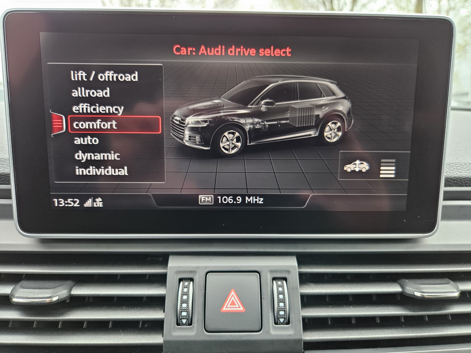 Limitator brzine, Tempomat, Audi hold assist, Električno podizanje prednjih i stražnjih prozora, Dekorativni umetci – aluminij, Rhombus, Automatski klima uređaj, Komforni automatski klima uređaj – 3 zone, Podesivi stup upravljača, Elektromehanički servo upravljač, Centralno daljinsko zaključavanje, Naslon(i) za ruke otraga, ISOFIX priprema na suvozačkom sjedalu s deaktiviranjem suvozačkog zračnog jastuka, Kopče za dječje sjedalo (ISOFIX)-straga, Automatski zatamnjivo unutarnje osvrtno zrcalo, Uzdužni krovni nosači, eloksirani aluminij
